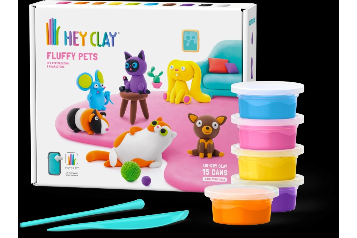 Objavte zábavu s kreatívnou sadou Hey Clay Fluffy Pets – balenie s 15 kelímkami ľahkej, voňavej a samoschnúcej hmoty, s ktorou deti ľahko vytvoria roztomilých miláčikov krok za krokom. Vďaka bezplatnej aplikácii Hey Clay (iOS/Android) s priloženým kódom na odomknutie návodov zvládnu vytvoriť 6 figúrok: 2 psíkov, 2 mačičky, morča a myš. Hotové modely po vyschnutí na vzduchu stvrdnú a stanú sa súčasťou ďalších hier. Vek 3+.