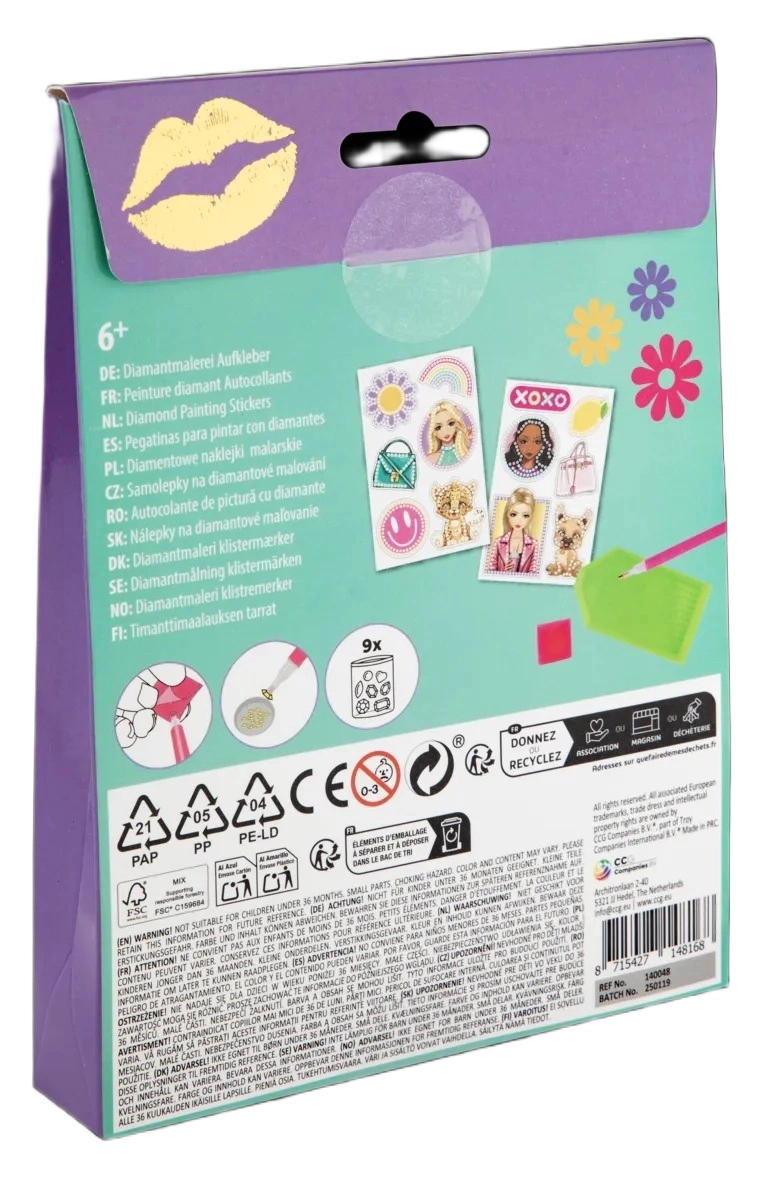 Táto kreatívna sada diamantového maľovania samolepiek prináša jednoduchý a relaxačný spôsob, ako si vytvoriť trblietavé dekorácie. Stačí nasypať kamienky na tácku, pomocou lepiaceho štvorčeka ich nabrať na aplikačné pero a lepiť na predtlačené motívy samolepiek.
