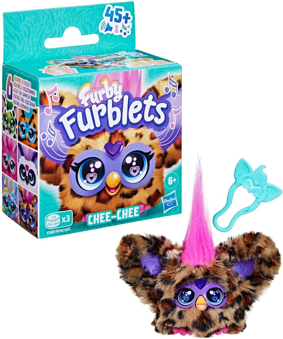 Objavte rozkošného kamaráta Furby Furblet Chee-Chee, ktorý prináša viac než 45 zvukových reakcií, hrá veselú hudbu a vie komunikovať vo Furbish. Vďaka odnímateľnému klipu ho ľahko pripnete na batoh či tašku a môžete si užívať zábavu kdekoľvek.