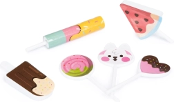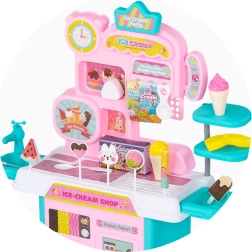 Premeňte detskú izbu na malý zmrzlinový stánok! Sada ponúka kornútiky, naberačky, kopčeky a lízatká, aby si deti mohli „pripravovať“ a servírovať rôzne druhy zmrzlín, vymýšľať vlastné kombinácie chutí a hrať sa na predaj.