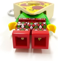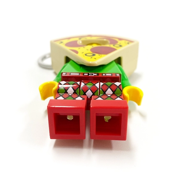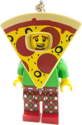 Okamžite rozpoznateľný vzhľad LEGO minifigúrky v pizza kostýme pridá vašim kľúčom osobitý štýl a hravosť.