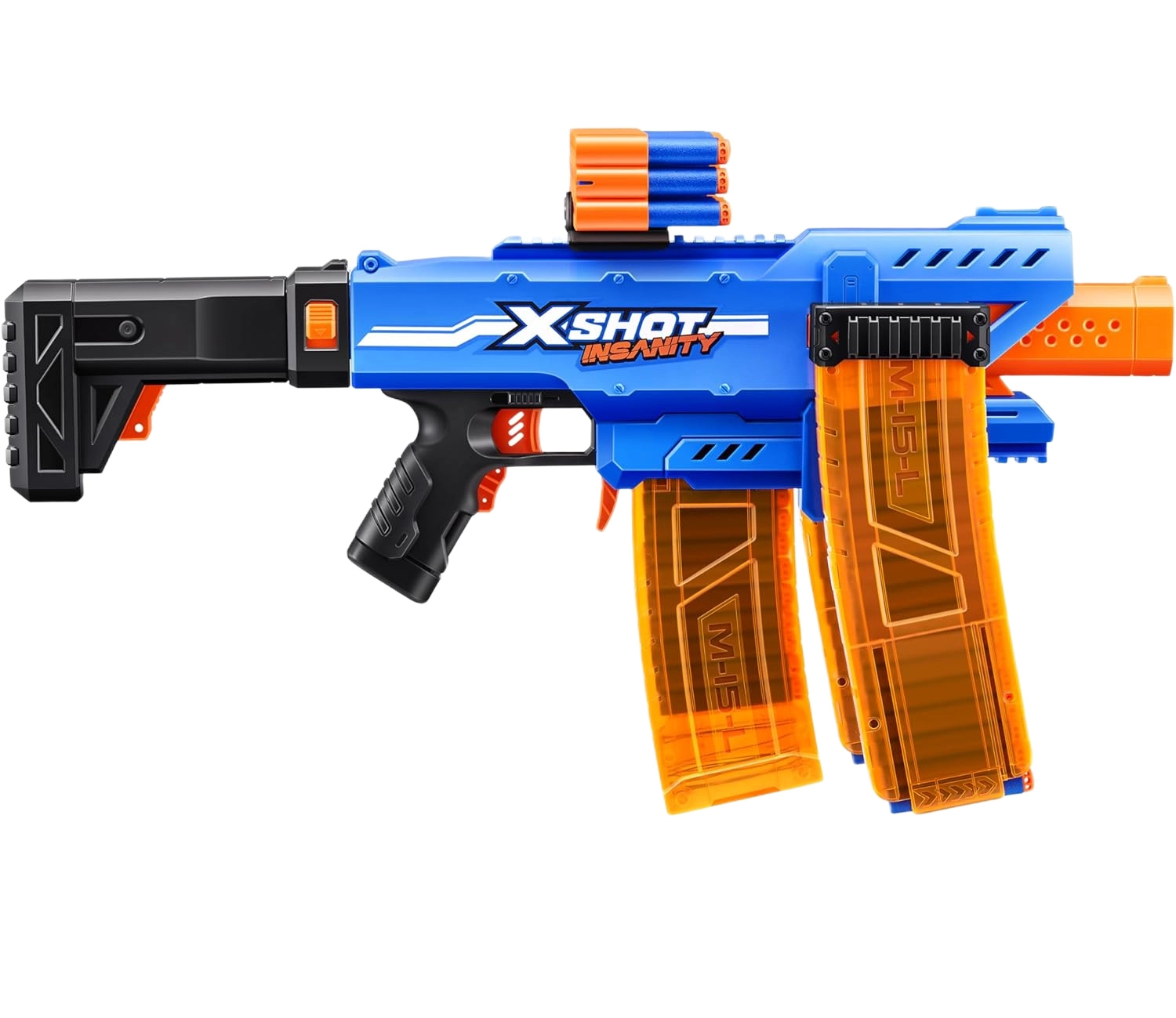 Bláster INSANITY vystrelí šípky až do vzdialenosti 27 m, takže si užijete presnú a napínavú streľbu aj na otvorenom priestranstve.