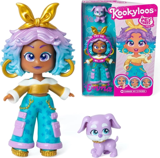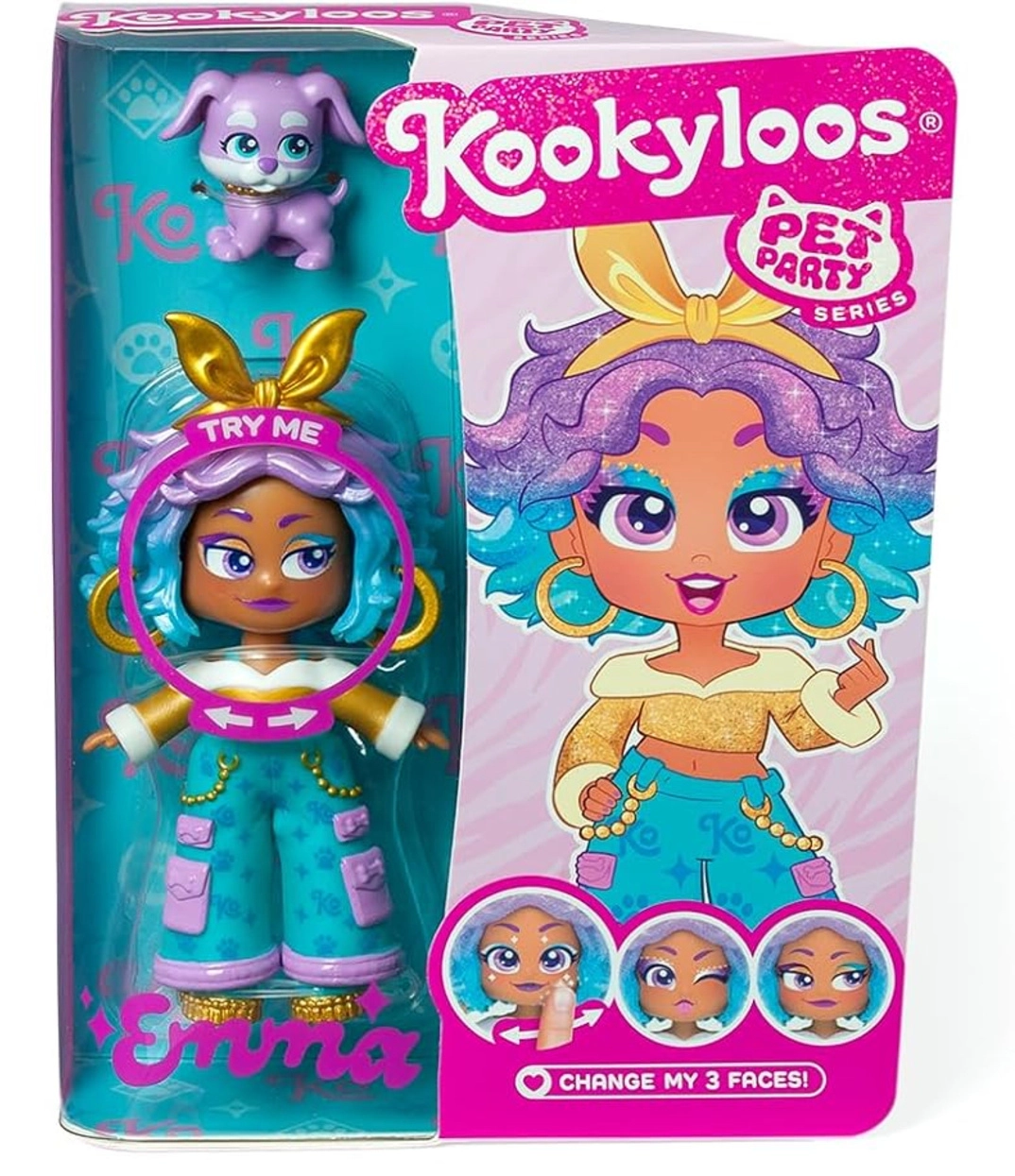 Objavte svet KookyLoos so zberateľskou figúrkou Emma – Pet Party. Figúrka má charakteristický outfit, moderný účes a doplnky ladiace s témou série. Po pootočení hlavičky získa Emma tri rôzne mimiky, takže môžete vyjadrovať emócie a vytvárať vlastné príbehy.