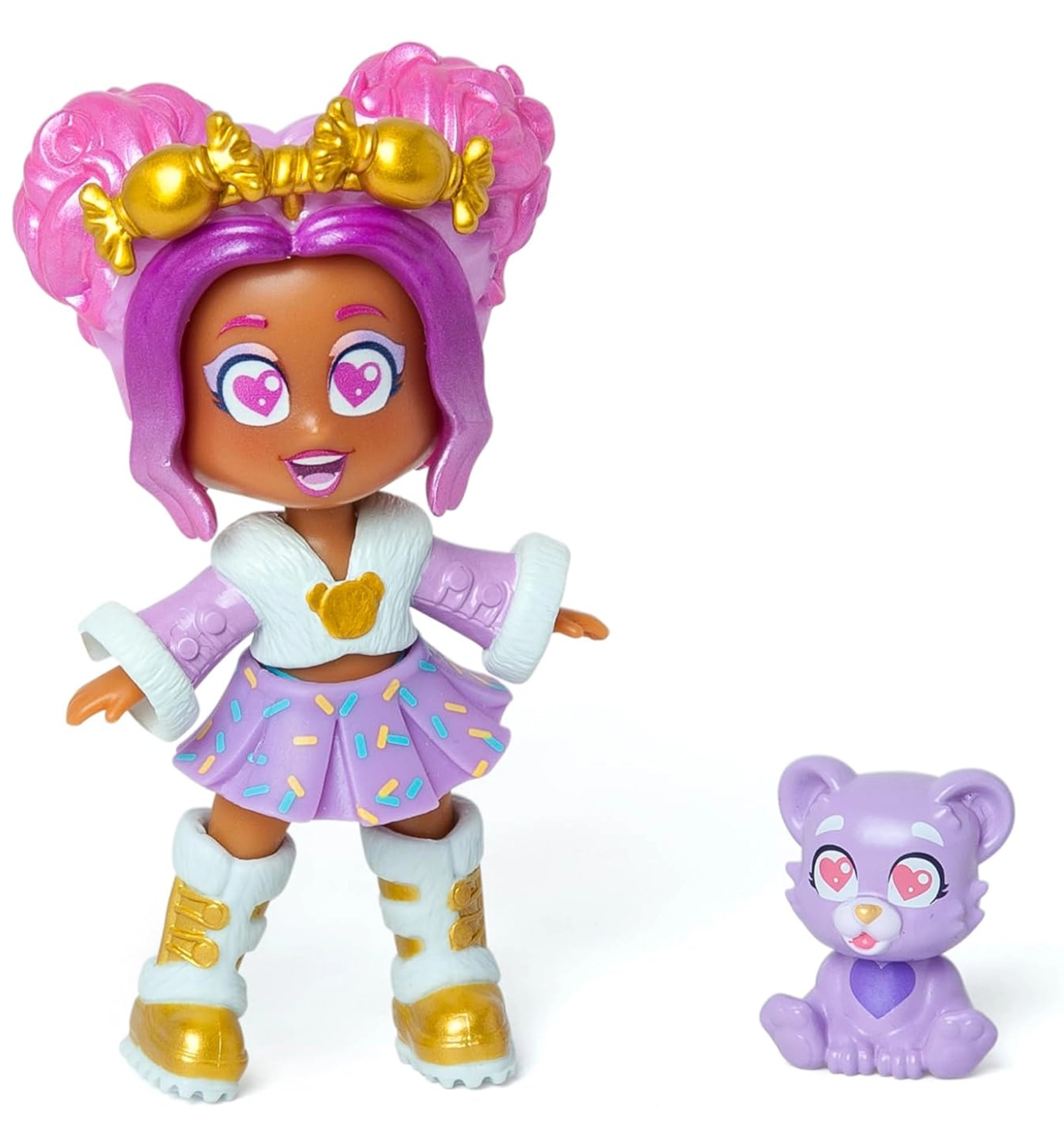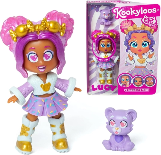 Objavte KookyLoos Lucy zo série Pet Party – štýlovú zberateľskú bábiku s tromi výrazmi tváre, ktoré zmeníte pootočením hlavičky. Súčasťou je rozkošný maznáčik – medvedík a módne doplnky pre nekonečné príbehy a kreatívnu hru. Ideálny darček pre deti, ktoré milujú zvieratká, módu a fantáziu.
