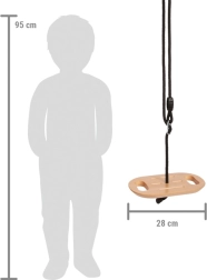 Tento štýlový hojdací disk v kombinácii prírodného dreva a čierneho lana je skvelým doplnkom pre vnútorné aj vonkajšie ihriská. Možno ho používať posediačky aj postojačky – ergonomické otvory na ruky a protišmykové drážky na sedáku poskytujú istotu a pohodlie pri každom hojdání.
