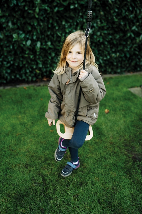 Masívne drevo, kvalitné syntetické lano a robustné spracovanie zaručujú dlhú životnosť a nosnosť až 100 kg pre deti aj dospelých.