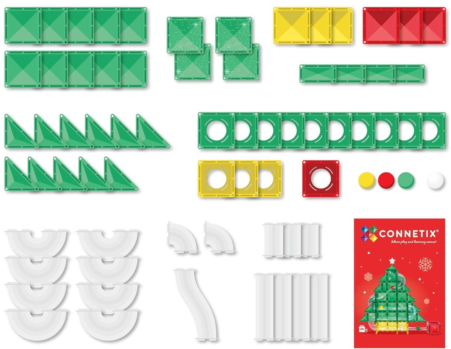 Limitovaná vianočná sada CONNETIX Christmas Tree Special Edition Ball Run Pack v žiarivých, trblietavých farbách je ideálna na kreatívne stavenie 2D a 3D modelov aj rýchlych dráh pre guličky. Vďaka silným neodýmovým magnetom sa dieliky spoľahlivo priťahujú zo všetkých strán a konštrukcie držia tvar. Charakteristické „kliknutie“ pri spojení prináša deťom okamžité uspokojenie a motivuje k ďalším experimentom.
