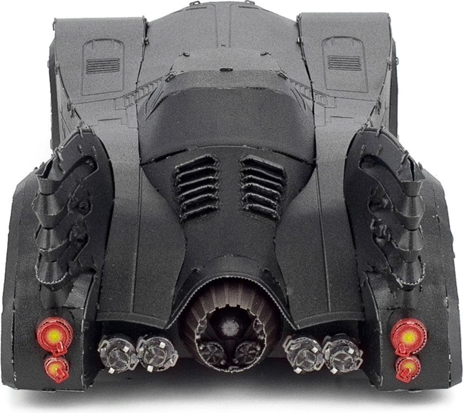 Laserom gravírované oceľové plátky vystihujú ikonické krivky, prieduchy a nitovanie Batmobilu pre maximálne realistický vzhľad.