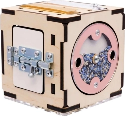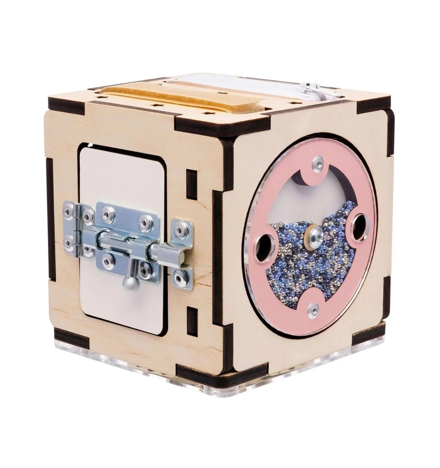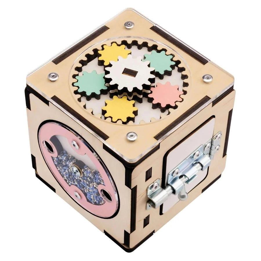 Táto montessori kocka je vyrobená z kvalitnej brezovej preglejky a ošetrená bezpečnými farbami na vodnej báze. Zaoblené hrany, pevná konštrukcia a premyslené mechanické prvky podporujú koordináciu ruka–oko, trpezlivosť a zvedavosť. Vďaka kompaktným rozmerom 11×11×11 cm si ju dieťa ľahko vezme kamkoľvek.
