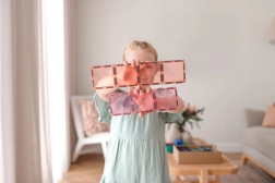 Deti objavujú symetriu, tvary, vzťahy v priestore a základy fyziky. Podporuje riešenie problémov, spoluprácu aj jemnú motoriku – skvelé pre Montessori a zmyslové aktivity.