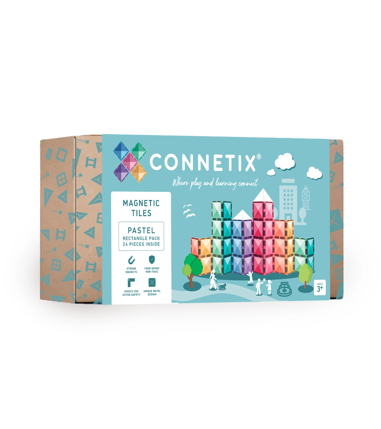 Pastelový set CONNETIX prináša priesvitné, odolné obdĺžnikové dieliky v jemných farbách, ktoré sa k sebe prichytia istým „kliknutím“. Deti si hravou formou precvičujú geometriu, fyziku a priestorovú predstavivosť, zatiaľ čo stavajú mosty, veže, dráhy či mozaiky. Bezpečné spracovanie bez BPA a ftalátov a zaoblené hrany sú zárukou pohodlnej a bezpečnej hry od 3 rokov.