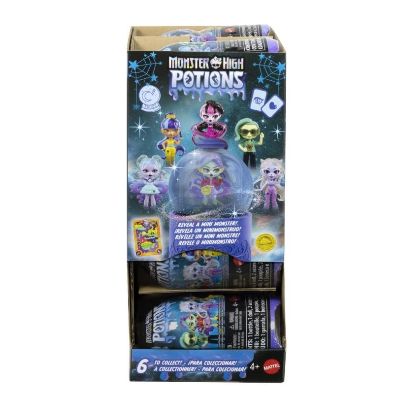 Objavte čaro zberateľskej série MONSTER HIGH: elixír s malou bábikou, kde sa bábika zjaví z magického elixíru po jednoduchom rituáli s vodou. Každé balenie ukrýva obľúbenú postavu približne 8 cm, dekoratívny prívesok a kartu s veštbou pre ešte viac zábavy. Skvelý darček pre deti od 4 rokov a perfektný doplnok do zbierky MONSTER HIGH.