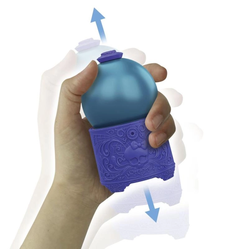 Tento hravý set prináša jedinečný zážitok z rozbaľovania: pripravte elixír v troch krokoch – nalejte vodu do gule, pretrepte a sledujte, ako sa magický elixír vytvorí. Potom guľu otočte a objaví sa malá bábika z vášho obľúbeného sveta MONSTER HIGH. Vďaka kompaktnej veľkosti je ideálny na hranie doma aj na cesty.