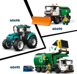 Súčasťou sú 3 minifigúrky, zábrany, značenie a fúrik na tvorbu realistických stavebných scén.