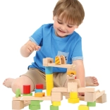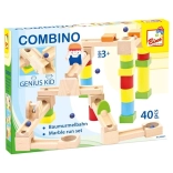 Stavebnica obsahuje 40 dielov, z ktorých 34 tvorí dráhu a 6 sú sklenené guľôčky. Dieliky z masívneho dreva v prírodných a jasných farbách dodajú hre vizuálne kúzlo a umožnia deťom precvičiť svoje sústredenie a zručnosť.