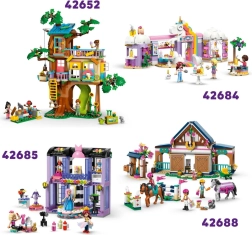Objavte pestrý svet priateľstva a fantázie s klubovňou LEGO Friends v Heartlake City. Trojposchodový model v kombinácii modrých, ružových a žltých prvkov je navrhnutý pre ľahký prístup a viditeľnosť interiéru vďaka veľkým oknám. Deti si užijú akčné scény s lanovou dráhou, šmýkačkou a lezeckou stenou, ale aj pokojné chvíle v ateliéri či kuchyni.