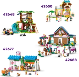Súčasťou sú dve minipanenky – jedna v jazdeckom oblečení a prilbe – a zvierací kamaráti, s ktorými možno trénovať prekážky, hrať sa pri jazierku alebo vyraziť na piknik. LEGO Builder prevedie deti stavbou krok za krokom, umožní sledovať postup a otáčať model v 3D, takže skladanie je intuitívne aj pre mladších staviteľov.