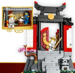 Postavte si pôsobivý kláštor s červeno‑čiernymi architektonickými prvkami, otváracou bránou so zlatým kruhom, zdobeným schodiskom a rozkvitnutou sakurou. Sada zahŕňa aj kamenný lampáš a čajovňu s nálepkami zachytávajúcimi slávne scény zo seriálu, takže získate autentickú výstavku, ktorá vzdáva hold histórii NINJAGO.