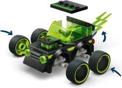 Herné pretekárske auto zo série LEGO City prináša deťom parádnu kombináciu akcie a fantázie. Výrazné farby, priehľadné zelené prvky a dynamické línie pripomínajú efekty z videohier, zatiaľ čo pevná konštrukcia je ideálna na každodenné hranie. Minifigúrka vodiča s helmou dodá každým pretekom ten správny adrenalín.
