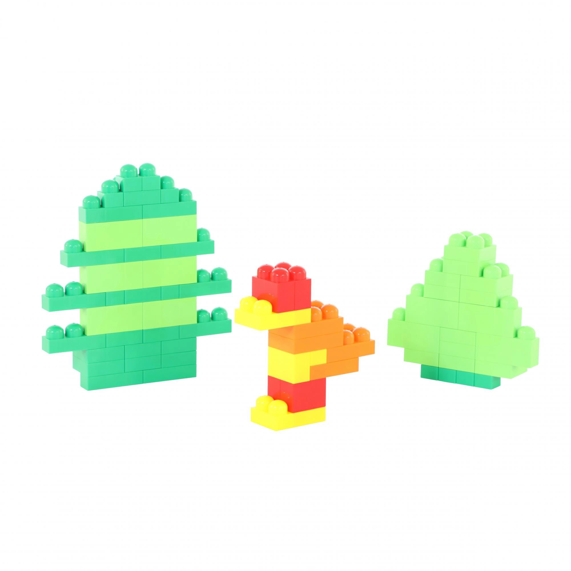 Z jasne farebných kociek deti ľahko postavia jednoduché modely – stromčeky aj roztomilé postavičky. Podporuje predstavivosť a príbehovú hru.