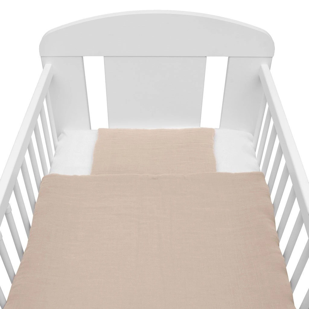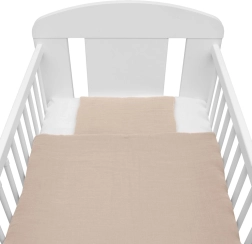 Táto béžová mušelínová sada prináša bábätku pohodlie od prvých dní života. Ľahká a vzdušná štruktúra mušelínu zabezpečuje výbornú cirkuláciu vzduchu a znižuje riziko prehriatia. Výplň z antialergických vlákien je bezpečná a vhodná aj pre citlivé deti.