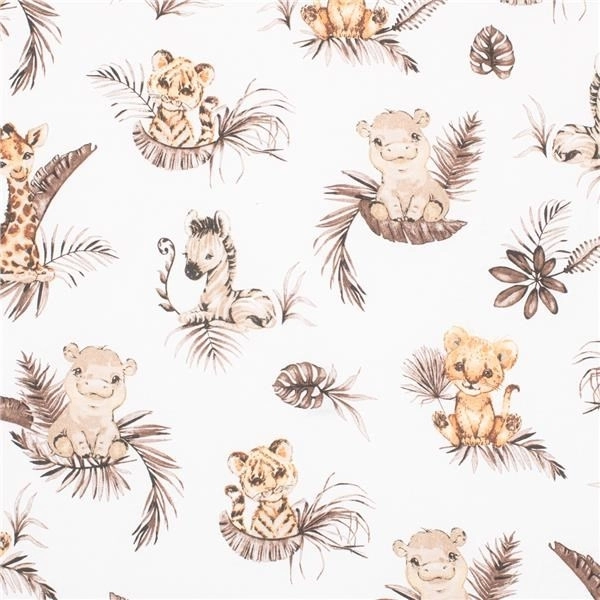 Vďaka rozmerom 90 × 150 cm perfektne obopne matrac 120 × 60 cm aj zo spodnej strany. Veselý detský motív Safari poteší malých spáčov a oživí interiér postieľky.