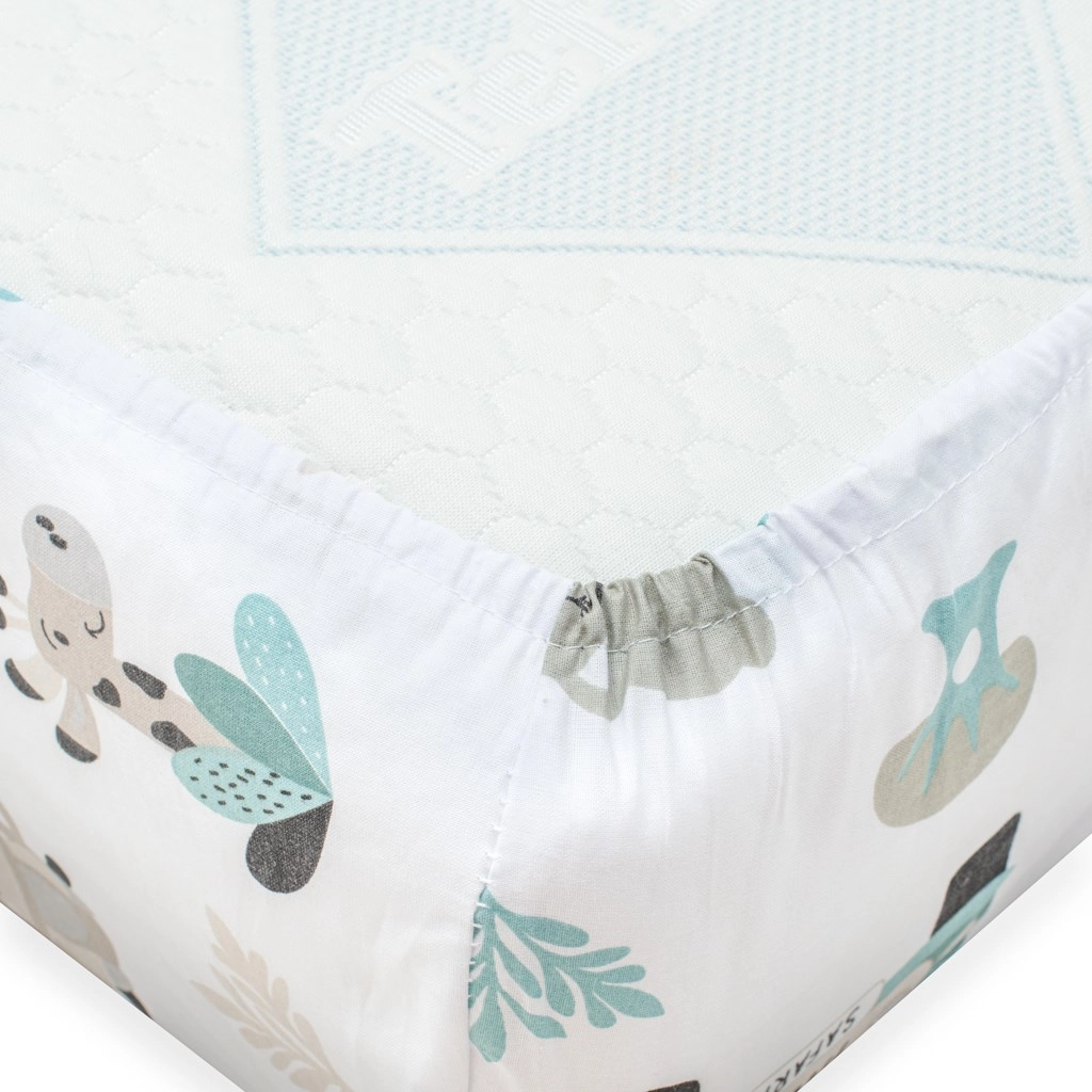 Praktická plachta do postieľky z kvalitnej hladkej bavlny zaistí vášmu bábätku pohodlie po celú noc. Vďaka všitej gumičke po obvode sa pevne prispôsobí matracu, neskĺzava a zostáva dokonale napnutá. Jemný detský motív Safari zútulní každú detskú postieľku.