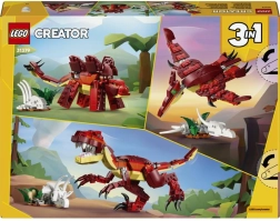 Stavebnica LEGO Creator 3 v 1 Divoký dinosaurus prináša deťom aj dospelým fanúšikom dinosaurov skvelú porciu zábavy a kreativity. Z tej istej sady kociek ľahko prestavíte realistického velociraptora s otvoriteľnou čeľusťou, stegosaura s pohyblivým krkom a nohami alebo pterosaura s polohovateľnými krídlami. Každý model dopĺňajú tematické prvky, ako sú dinosaušie vajcia, lebka a kostra hrudníka, vďaka ktorým vznikajú napínavé príbehy a efektné výstavky.