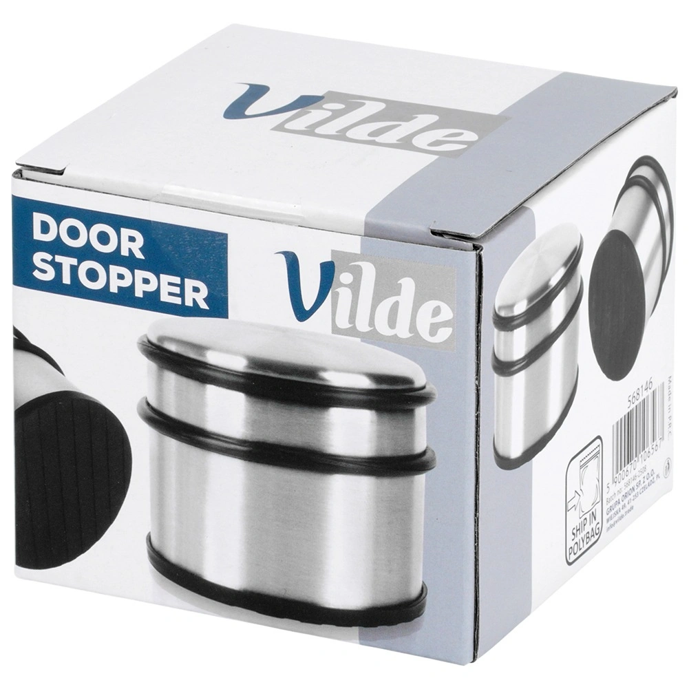 Robustný nerezový stoper na dvere s hmotnosťou 1,1 kg spoľahlivo udrží dvere na mieste a ochráni steny aj podlahu. Vďaka kompaktným rozmerom 9,5 × 7,5 cm a modernému vzhľadu sa hodí do každého interiéru. Protišmyková gumová základňa a gumové nárazníky tlmia nárazy a bránia poškriabaniu. Bez vŕtania a lepenia – stačí postaviť na podlahu.
