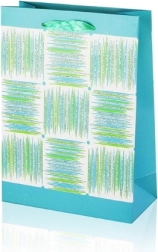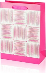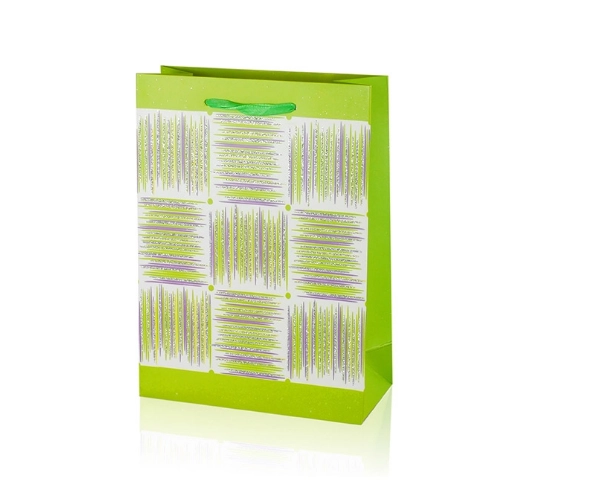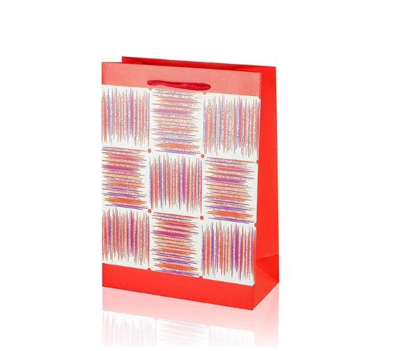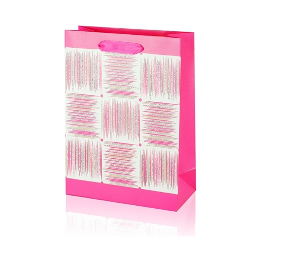 Táto darčeková taška A5 kombinuje praktické rozmery s atraktívnym dizajnom. Lesklý povrch, dekoratívny panel s prúžkami a stuhové ušká dodajú vášmu darčeku prémiový vzhľad. Taška má skladacie boky a pevné dno pre stabilitu pri vkladaní predmetov.