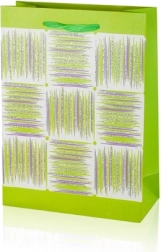 Komfortné prenášanie zabezpečujú stuhové ušká, lesklé lamino dodáva prémiový vzhľad a ochranu proti oderu.