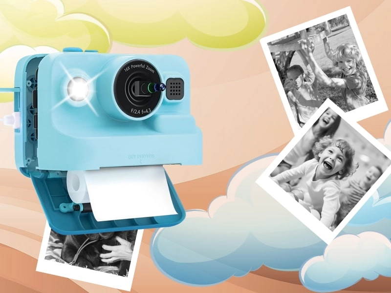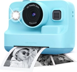 Zábavný detský fotoaparát s integrovanou tlačiarňou na okamžité fotky, nahrávanie videí v 1080P, 2,4" displejom a vstavanými hrami. Podporuje microSD až 32 GB, nabíja sa cez USB‑C a tlačí na termopapier 57 × 30 mm bez atramentu. V balení sú 3 rolky papiera – ideálne pre kreatívne deti na cesty aj každodenné dobrodružstvá.