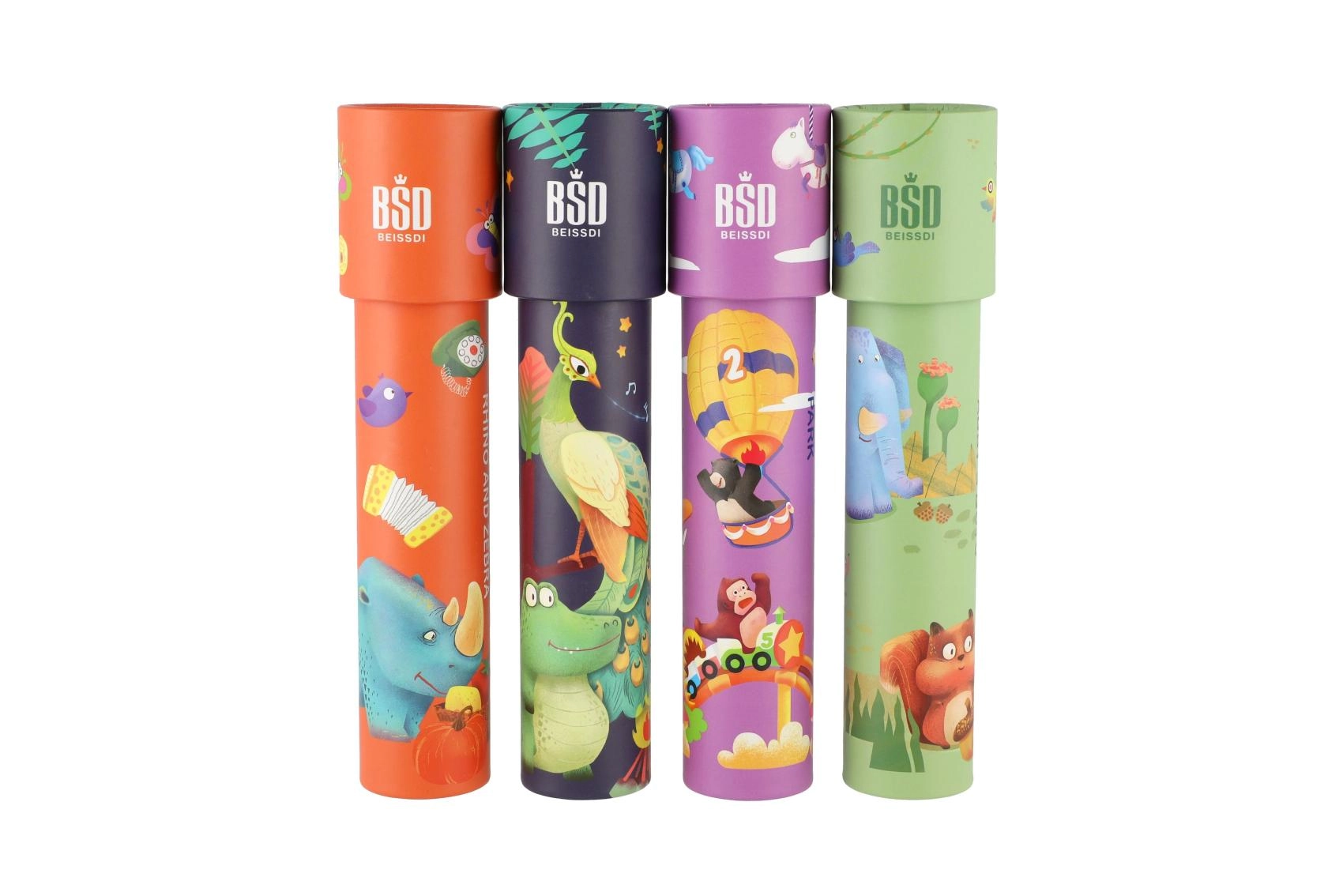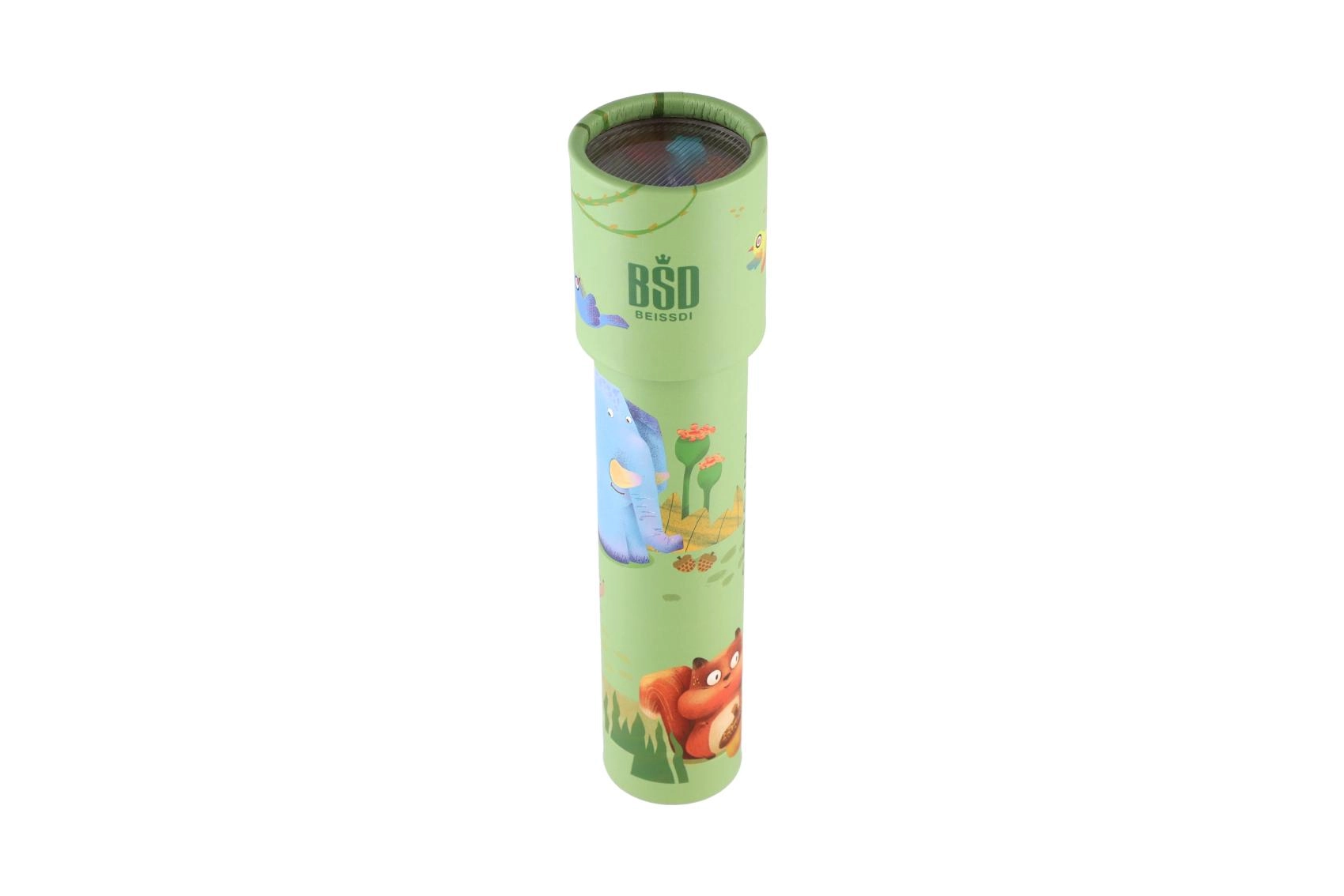 Tento ľahký a odolný kaleidoskop je ideálny pre deti, ktoré milujú objavovanie nových tvarov a farieb. Farebné ilustrácie zvieratiek na povrchu podporujú hravú atmosféru a robia z kaleidoskopu perfektný drobný darček alebo odmenu.
