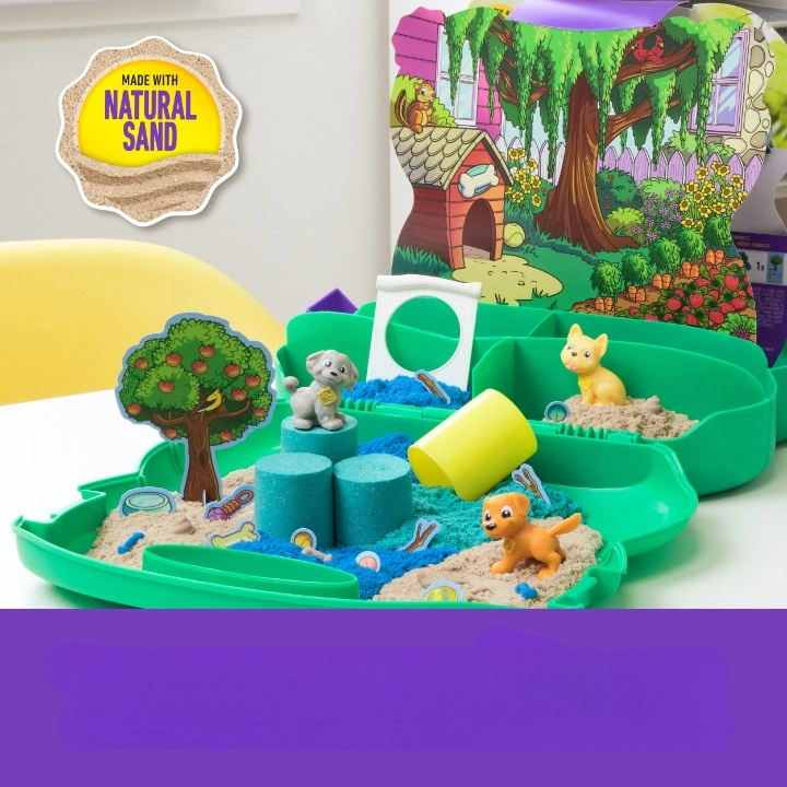 S touto prenosnou sadou si deti vytvoria vlastný psí park kdekoľvek a kedykoľvek. Kinetický piesok sa krásne tvaruje, drží tvar a vďaka svojim vlastnostiam sa nesype do strán. Kufrík slúži ako hracia tácka aj ako praktické úložisko všetkých dielikov, takže po hraní je upratovanie otázkou chvíľky.