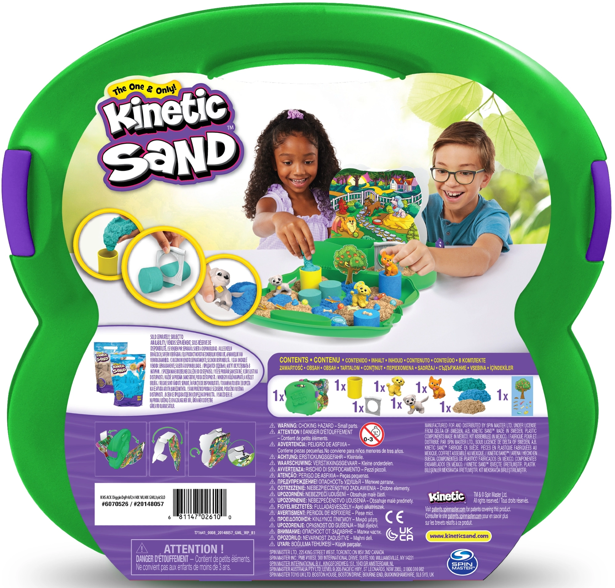 Objavte zábavu s prenosnou sadou Kinetic Sand Diggin’ Dog Park od značky SPIN MASTER. V praktickom kufríku nájdete 680 g kinetického piesku v 3 farbách, rozkošné figúrky psíkov, nástroje a kulisy parku. Piesok pôsobí ako mokrý, ale ruky zostávajú suché, neprašní a ľahko sa upratuje – ideálne na kreatívne hranie a rozvoj jemnej motoriky.