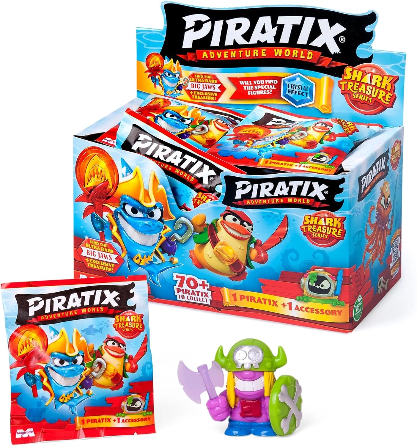 Vydajte sa do dobrodružného sveta Piratix Adventure World – Shark Treasure, kde čakajú skryté poklady, pirátske súboje a napätie na každom kroku. Každý sáčok obsahuje prekvapivú figúrku a tematické príslušenstvo, čo z neho robí skvelý zberateľský kúsok pre malých objaviteľov.