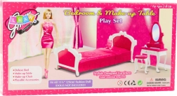 Štýlová súprava nábytku do spálne pre bábiky typu fashion s výškou cca 29 cm. Obsahuje posteľ, toaletný stolík so zrkadlom a stoličku. Odolné plastové prevedenie, ružovo-biely dizajn a bezpečné zaoblené tvary podporujú kreatívnu hru a rozvoj jemnej motoriky.