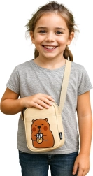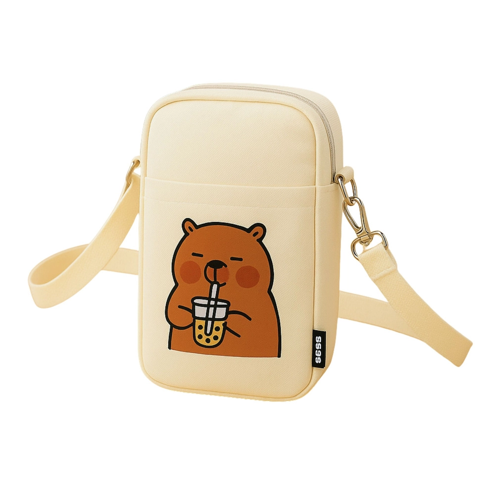 Vďaka nastaviteľnému popruhu si ľahko upravíte dĺžku presne podľa postavy. Hlavné zipsové vrecko bezpečne pojme nevyhnutnosti, zatiaľ čo predné otvorené vrecko uľahčí rýchly prístup k drobnostiam. Predná potlač roztomilej kapybary s bubble tea dodáva taške originálny vzhľad, ktorý zaujme deti aj dospelých.