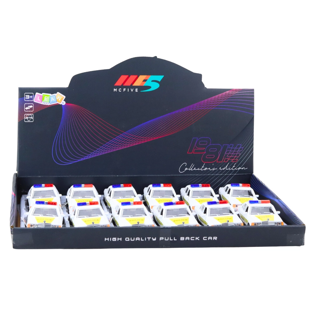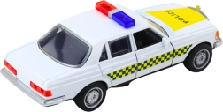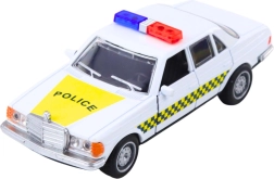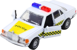 Stačí autíčko natiahnuť dozadu a pull-back mechanizmus ho vystrelí vpred, čo zaručuje akčnú a opakovane zábavnú hru. Autentická biela policajná grafika so žltými prvkami a svetelnou rampou na streche podčiarkuje realistický vzhľad.