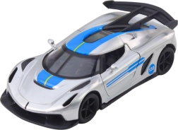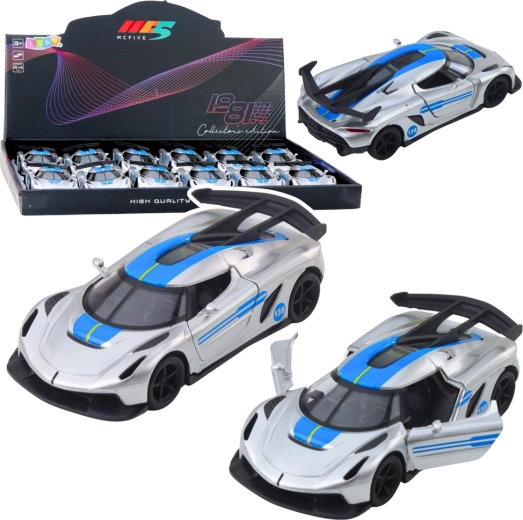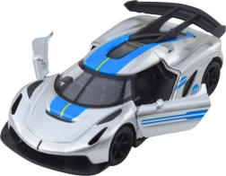 Štýlové kovové športové autíčko v mierke 1:32 poteší malých pretekárov aj zberateľov. Má kovovú karosériu, otváracie dvere a spätný pohon pull-back pre dynamickú jazdu. Atraktívny strieborný dizajn s modrými prvkami a detailné spracovanie zaručia realistický vzhľad a veľa zábavy doma aj na cestách.