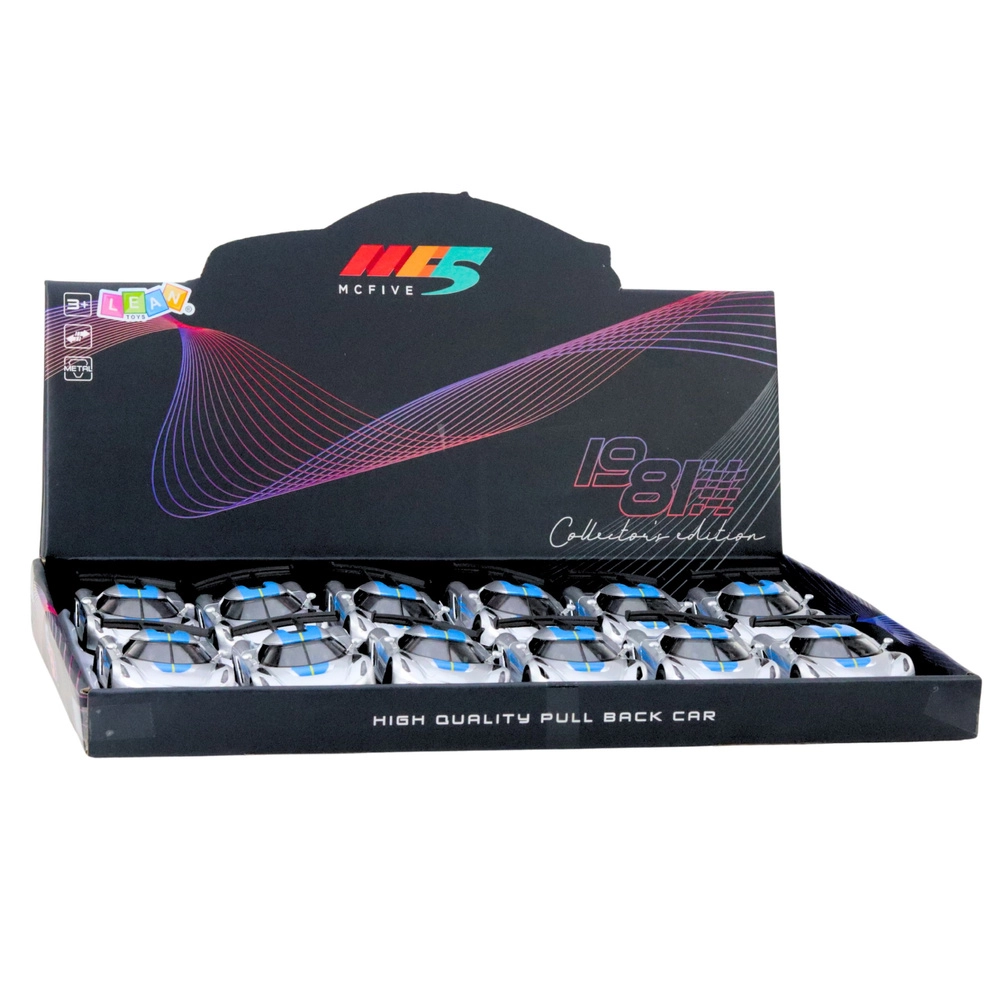 Model v mierke 1:32 je ideálny na každodenné hranie aj ako doplnok zbierky. Strieborná farba s modrými a čiernymi akcentmi a aerodynamické línie podčiarkujú pretekársky charakter. Vďaka kompaktným rozmerom si ho ľahko vezmete do škôlky, na výlet aj na návštevu.