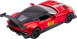 Výrazná červená karoséria, pretekárske polepy a veľké zadné krídlo robia z autíčka atraktívny kúsok na hru aj vystavenie.