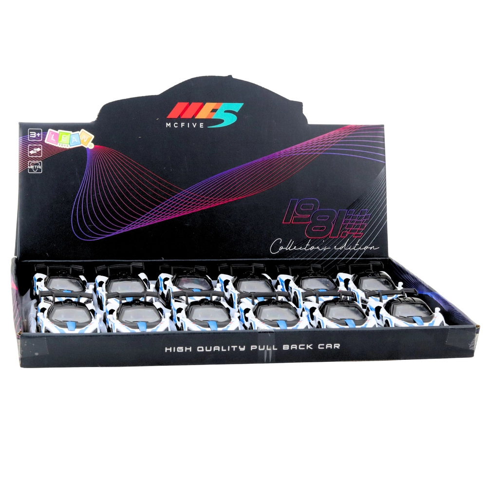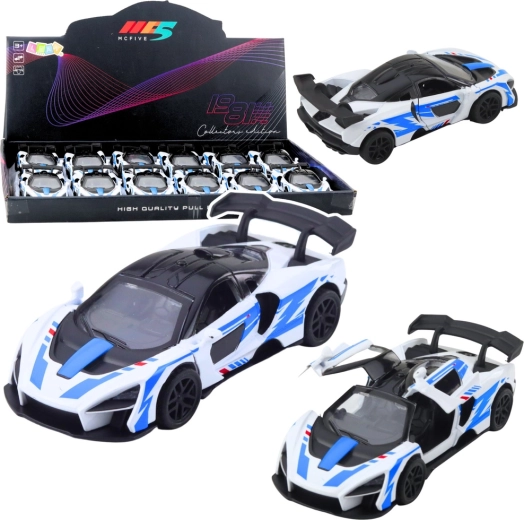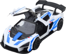 Autíčko je ideálne na zábavu aj zbieranie. Športový vzhľad, aerodynamické línie a kontrastné farebné prevedenie v bielej s modrými a čiernymi prvkami pritiahnu pozornosť na prvý pohľad. Kompaktné rozmery umožnia vziať hračku kamkoľvek so sebou – na prechádzku, do škôlky aj na cesty.