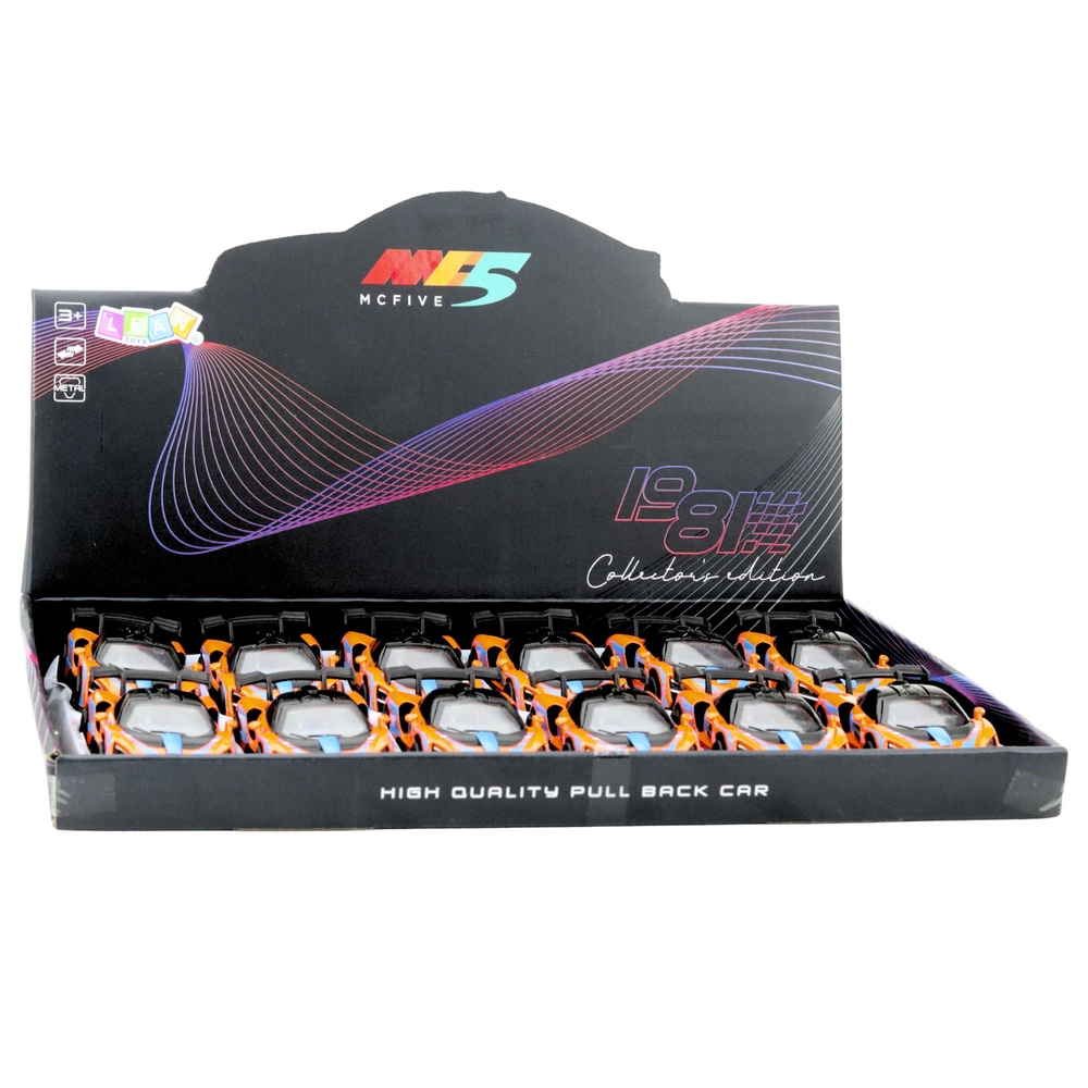 Realistický mini model supersportu vyniká výraznou oranžovou farbou s modrými a čiernymi detailmi, veľkým zadným krídlom a aerodynamickými tvarmi. Kovová karoséria zaisťuje vyššiu odolnosť pri každodennom hraní, zatiaľ čo otváracie dvere dodávajú modelu autentickosť a pozývajú nahliadnuť do interiéru.