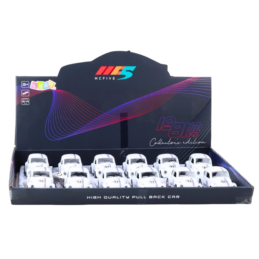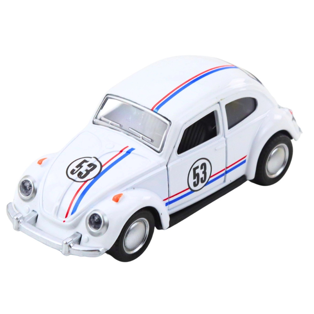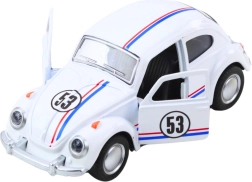 Štýlový kovový model inšpirovaný legendárnym „chrobákom“ v mierke 1:32 nadchne deti aj zberateľov. Ponúka kovovú karosériu, napínavý pull-back pohon pre rýchlu jazdu, otváracie dvere a detailné spracovanie v elegantnej bielej farbe.