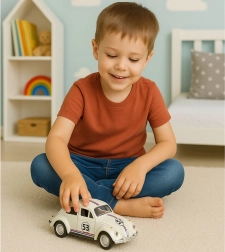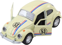 Objavte čaro klasickej automobilovej ikony v kompaktnom prevedení. Tento kovový model chrobáka v mierke 1:32 vyniká precíznym spracovaním detailov, pevnou konštrukciou a hladkou jazdou po rovných povrchoch. Vďaka natahovaciemu pohonu stačí auto jemne natiahnuť dozadu a pustiť – zábava sa rozbehne sama.