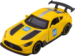 Žlté závodné autíčko v mierke 1:43 vyniká realistickými detailmi a robustným spracovaním. Kovová karoséria zvyšuje odolnosť, zatiaľ čo otváracie dvere podnecujú fantáziu a umožňujú deťom vytvárať vlastné závodné príbehy. Naťahovací pohon pull-back zabezpečí rýchly štart – stačí natiahnuť dozadu a pustiť.