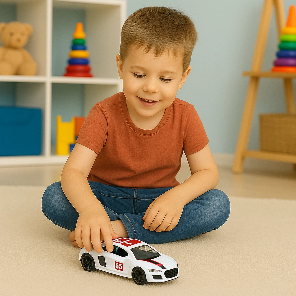 Objavte zábavu s kovovým športovým autíčkom v mierke 1:43, ktoré kombinuje štýlový dizajn a funkcie podporujúce hru. Pull-back pohon umožní vozidlu po natiahnutí vyraziť dopredu, zatiaľ čo otváracie dvere umocnia realistický zážitok a inšpirujú k imaginatívnej hre.