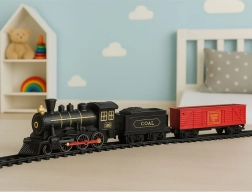 Objavte čaro klasických parných vlakov v modernom prevedení. Robustná lokomotíva na batérie AA s osvetlením ťahá nákladný aj osobný vozeň a hladko jazdí po plastových koľajniciach. Vďaka rôznym konfiguráciám koľají si deti postavia oválnu alebo kruhovú trať a zakaždým zažijú inú jazdu.