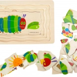 Toto drevené vrstvené puzzle inšpirované príbehom Veľmi hladná húsenica prevedie deti skladaním krok za krokom. Každá vrstva zvyšuje náročnosť a prináša nové ilustrácie, vďaka ktorým sa deti učia trpezlivosti aj logickému mysleniu.